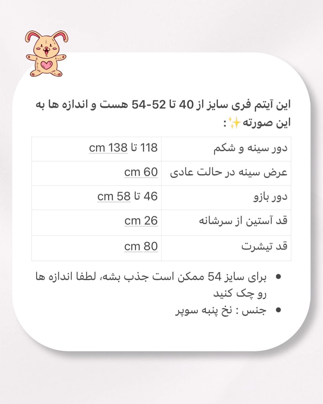 - اندازه های دقیق داخل جدول راهنمای سایز✨