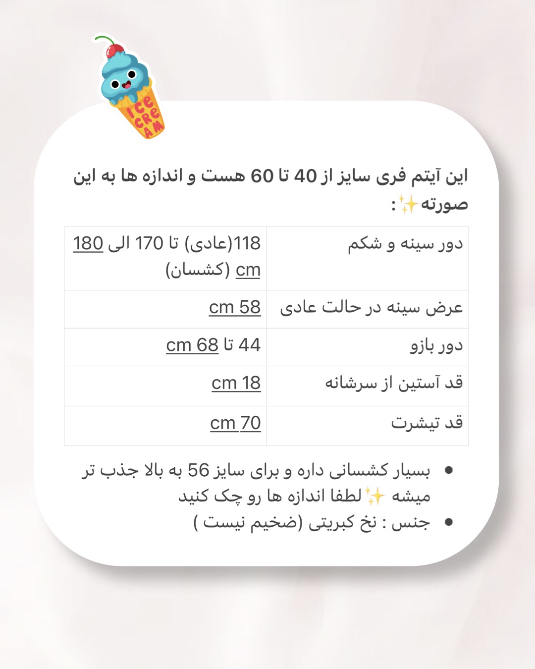 - اندازه های دقیق داخل جدول راهنمای سایز✨