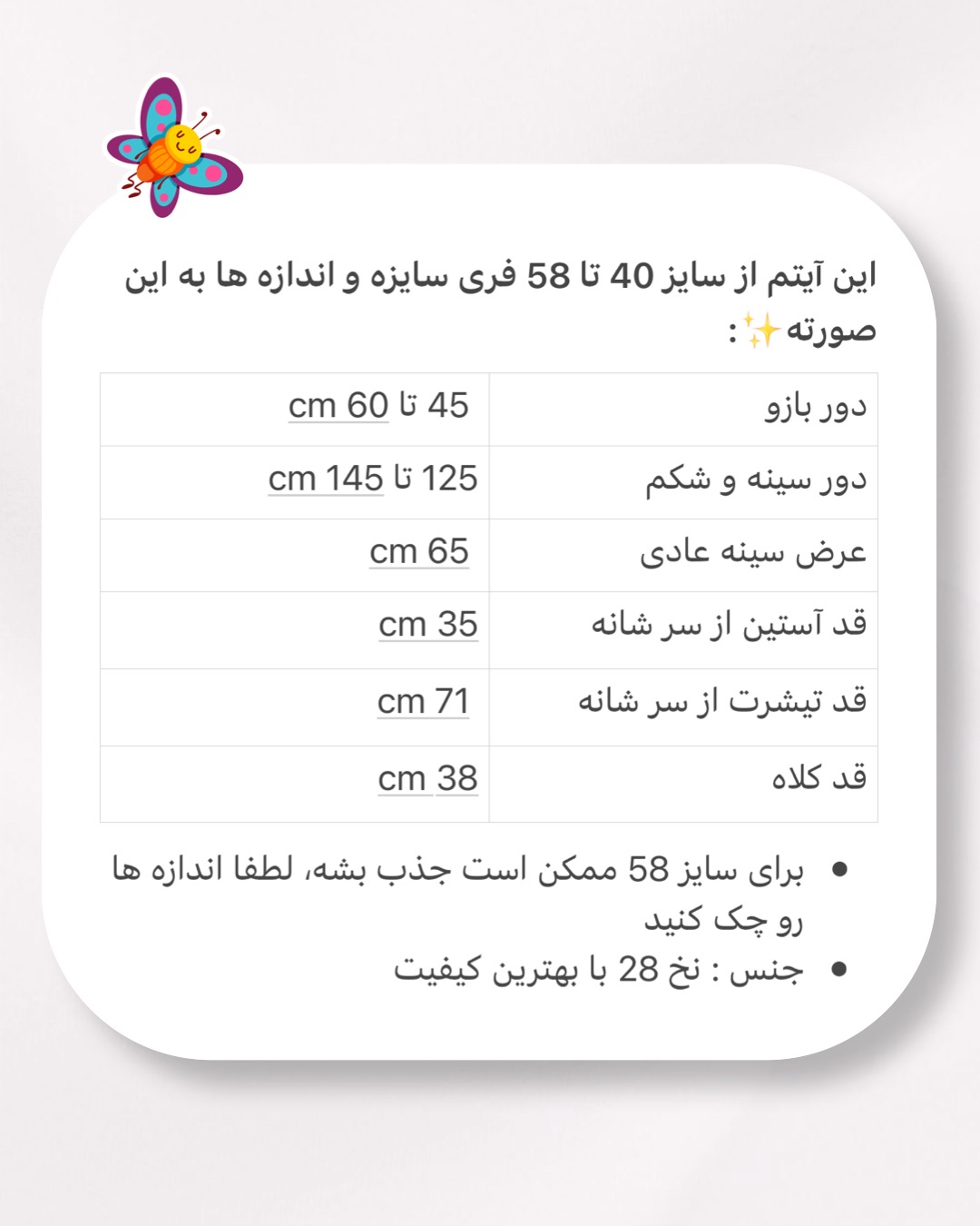 - اندازه های دقیق داخل جدول راهنمای سایز✨
