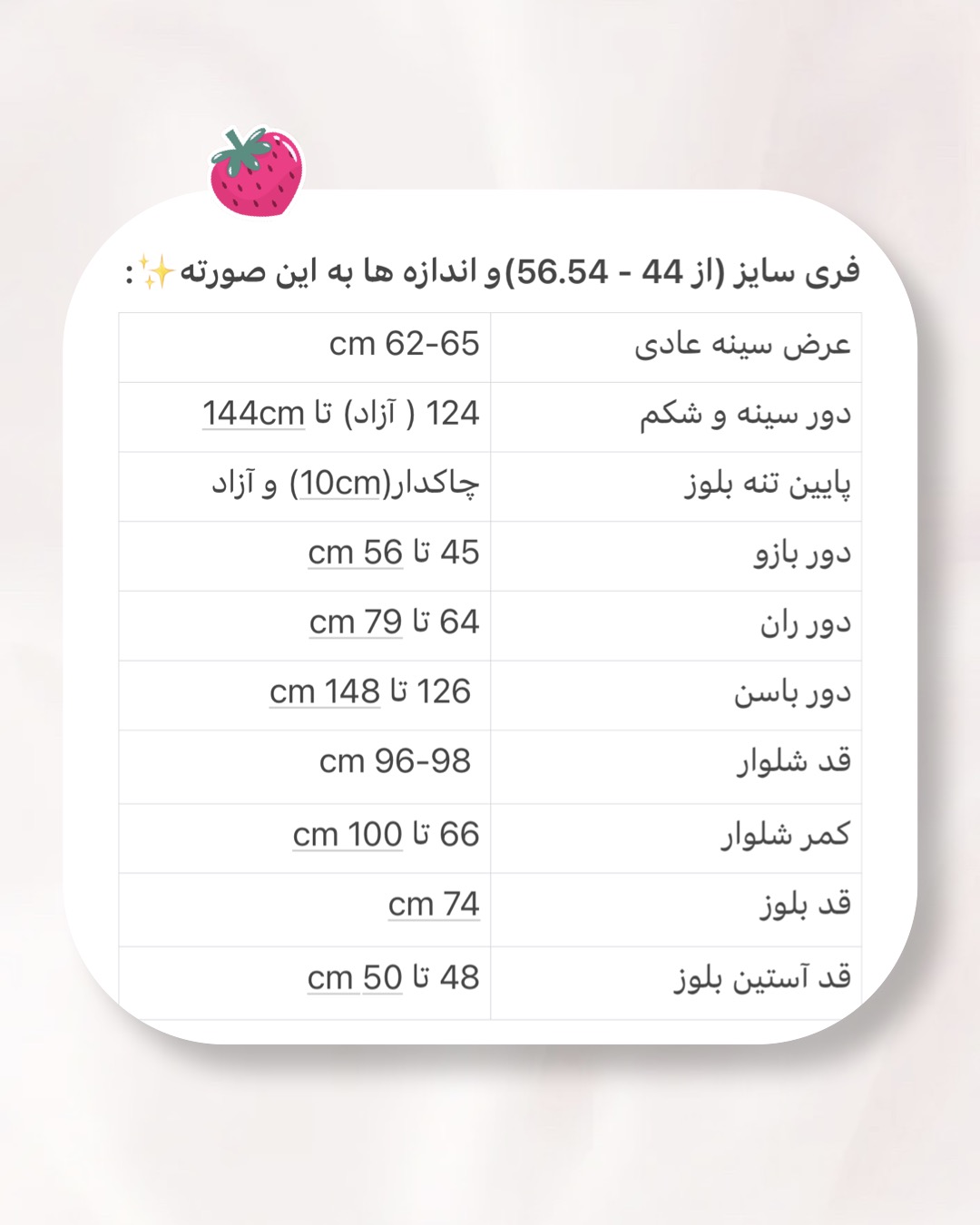- حتما اندازه های دقیق داخل جدول راهنمای سایز چک شود✨