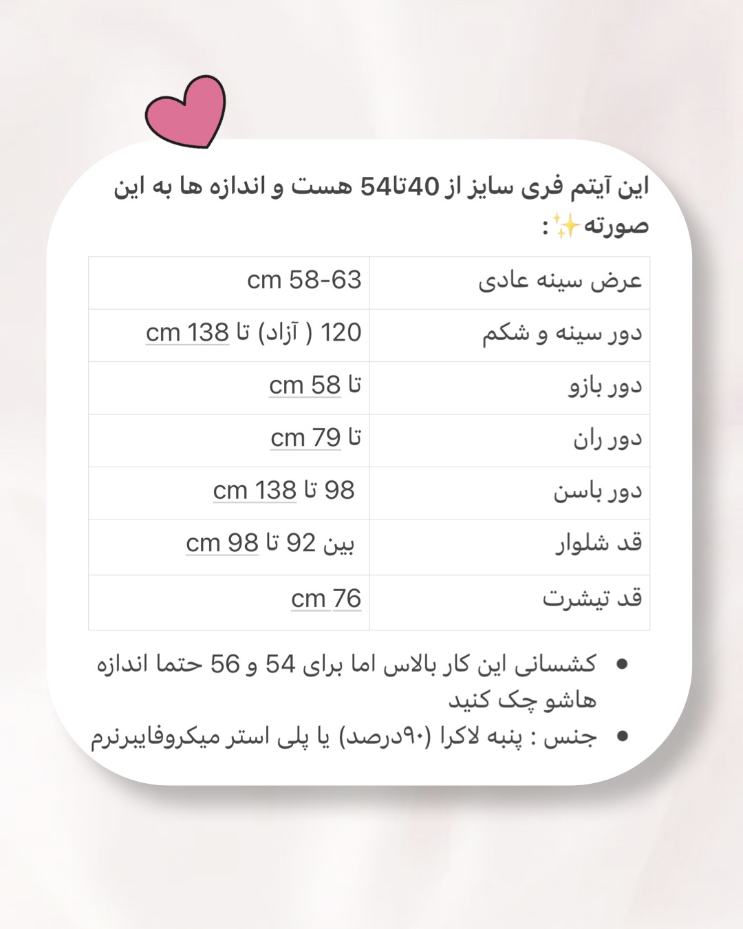 اندازه های دقیق داخل جدول راهنمای سایز✨