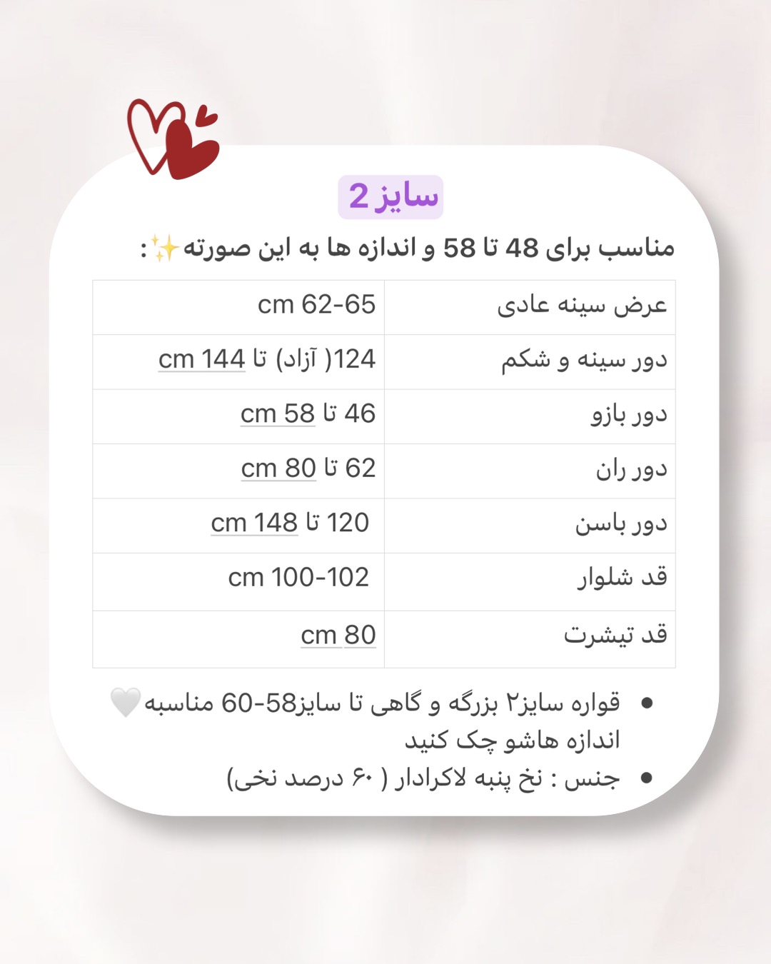 - اندازه های دقیق داخل جدول راهنمای سایز✨