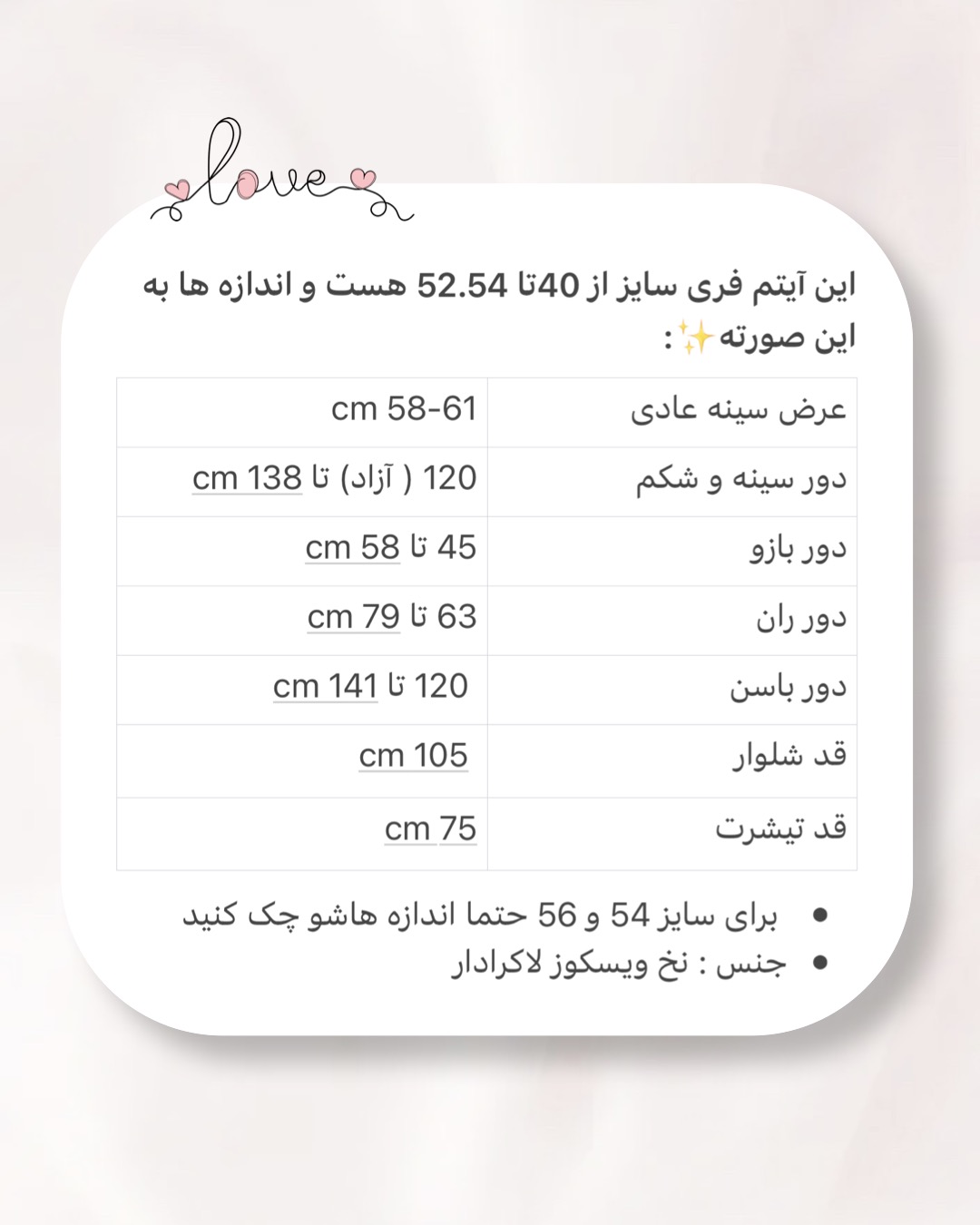 - اندازه های دقیق داخل جدول راهنمای سایز✨